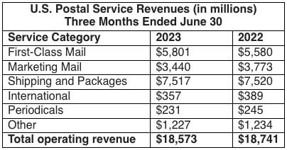 As also stated in the press release, USPS had declining revenues in all service areas except for one: first-class mail.