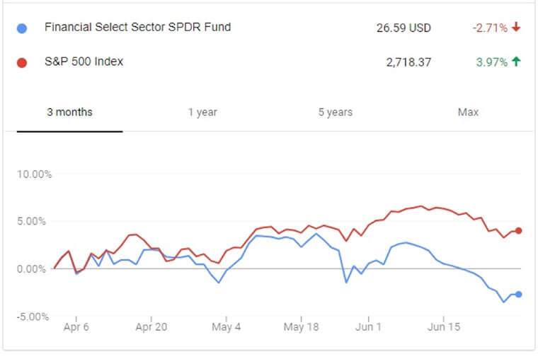 What broke the 13-day losing streak for U.S. financial stocks was that the Federal Reserve approved capital return plans of most major banks on June 28th. This gave bank stocks a boost late last week.