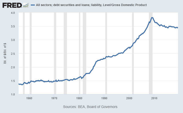 The other fragility is that the U.S. is entering this issue with total debt to GDP of 350%, which is near record highs.
