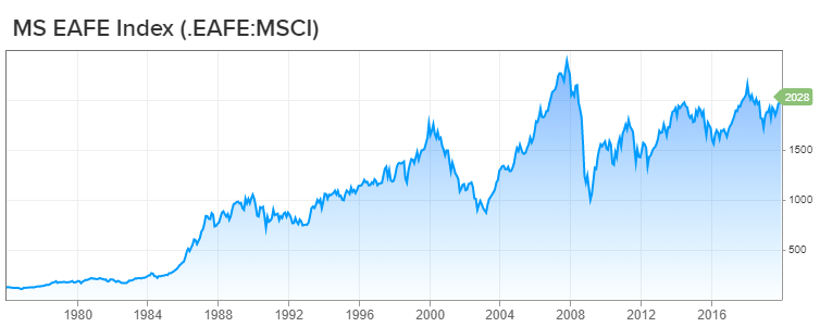 The MSCI EAFE index, that the I Fund currently tracks, is still down from its all-time highs from 2007, and below its more recent 2018 highs: