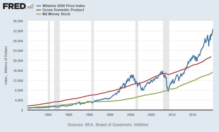 However, the total valuation of the U.S. stock market has considerably outpaced its normal ratio to U.S. GDP and U.S. broad money supply: