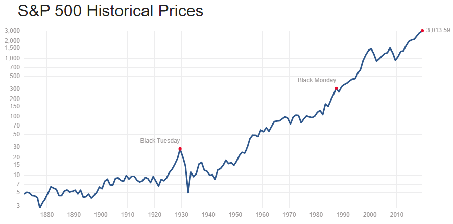 Looking back further, investors could have bought the S&P 500 for under 100 in the 1970’s and enjoyed massive price appreciation as well as dividends along the way. The first index fund was created by John Bogle, founder of Vanguard, in the mid-1970’s. Before then, investors had to rely on stock-picking or more expensive mutual fund companies to manage their equities.