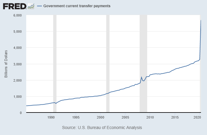 The government sent out one-time $1,200 stimulus checks to employed and unemployed people, sent $600/week in extra federal unemployment benefits on top of normal state unemployment benefits to unemployed people, expanded the coverage of those unemployment benefits to include self-employed people that wouldn’t normally be covered by them, provided corporate bailouts for hard-hit industries, and provided over $500 billion in PPP loans to small businesses across the full range of industries, which mostly will be forgiven and therefore turn into grants.