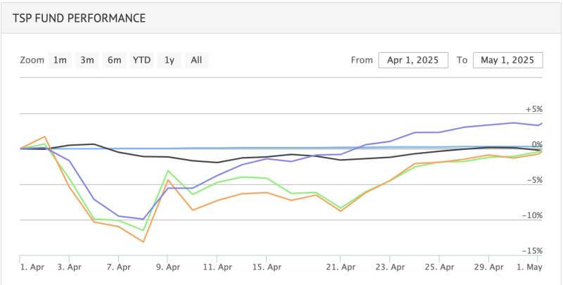 TSP investors had sufficient warning to make their interfund investment changes – but the breadth and size of the tariffs announced caught many off guard. Instead, TSP investors PANICKED on April 2 and began asking for financial advice from Facebook Forum strangers. This created the new term “Panicans.” Anyone who moved their money after April 2 into the G Fund, recognized a loss. Accounts dropping in value after April 2 was a dip in the market and it became a buying opportunity – not a selling opportunity after the fact. Markets began to acclimate to the White House’s trade approach and investors poured back in, sending indexes higher.